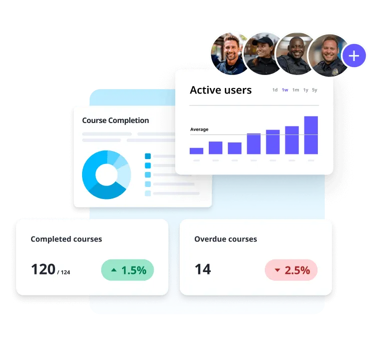 Track course and team performance for digital and in-person training with built-in reporting. So you can be compliant by default.