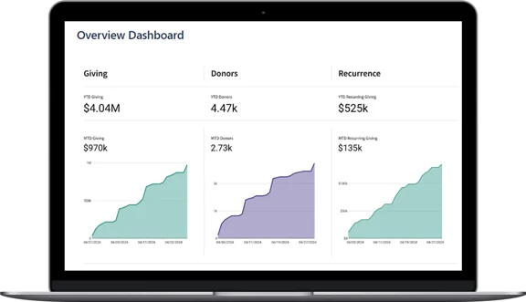 Vanco Church Giving Dashboards transform donor data into actionable insights. With simplified reporting, donor tracking, and scheduled gift analysis, churches can easily identify trends, engage members, and plan outreach. The intuitive interface makes it easy to share insights with boards and staff, helping ministries grow generosity with confidence.