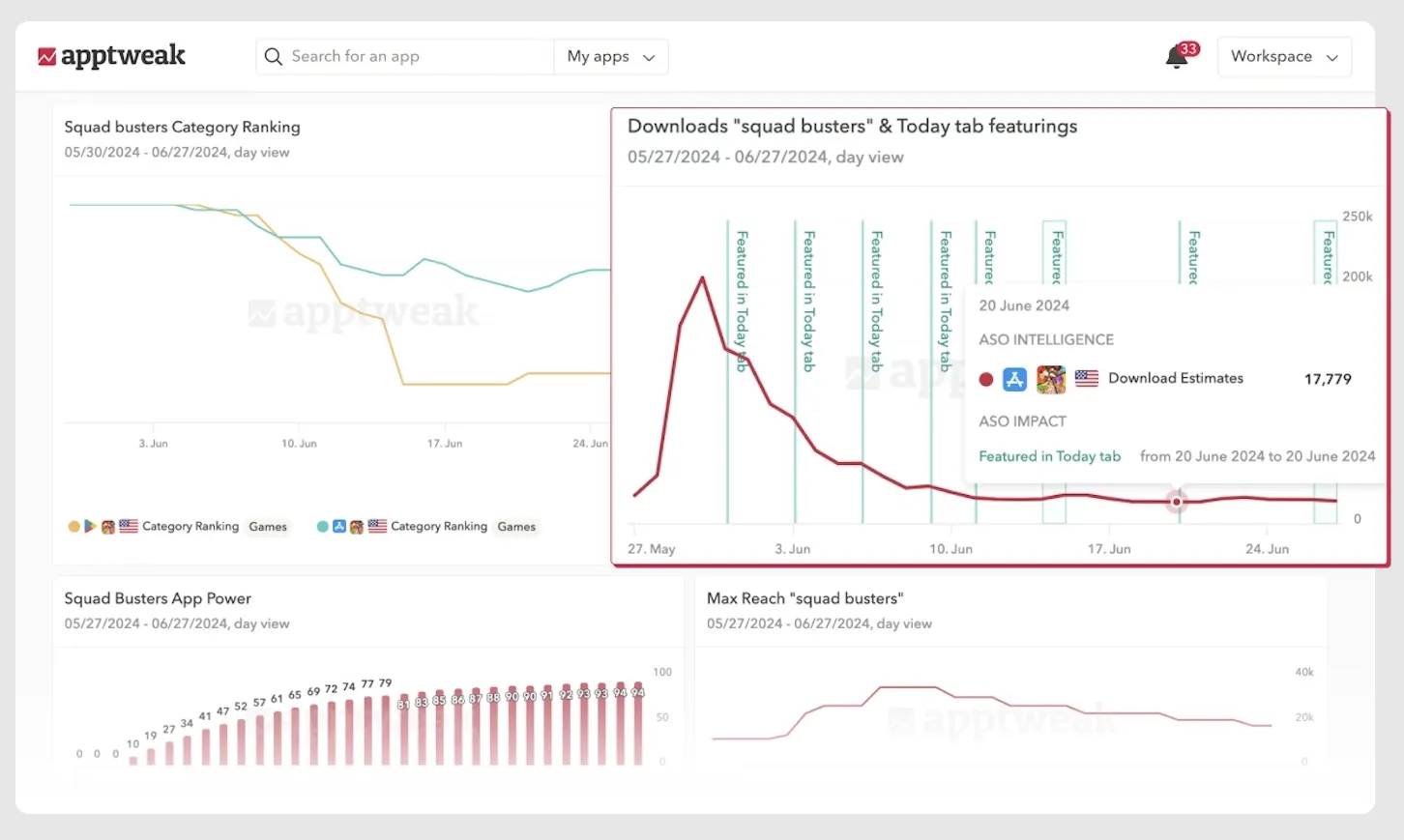 Reporting Studio centralizes all your data—from AppTweak, App Store Connect, Google Play, and MMPs—in one place. This empowers your team with real-time insights without constantly switching platforms, keeping everyone aligned on key performance metrics.