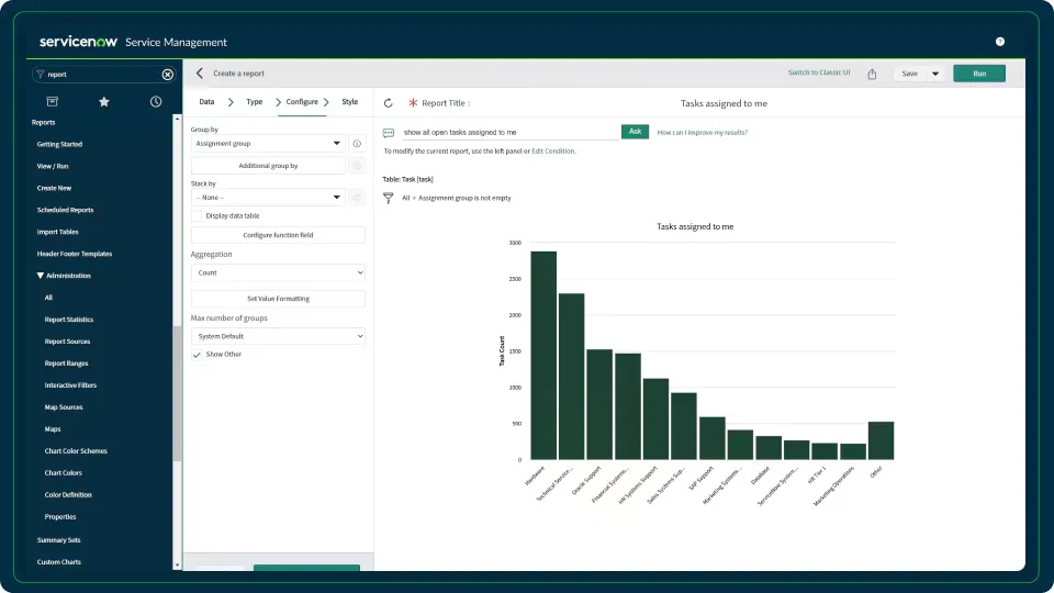 Integrated Reporting Seamlessly integrated with the Now Platform for comprehensive reporting capabilities