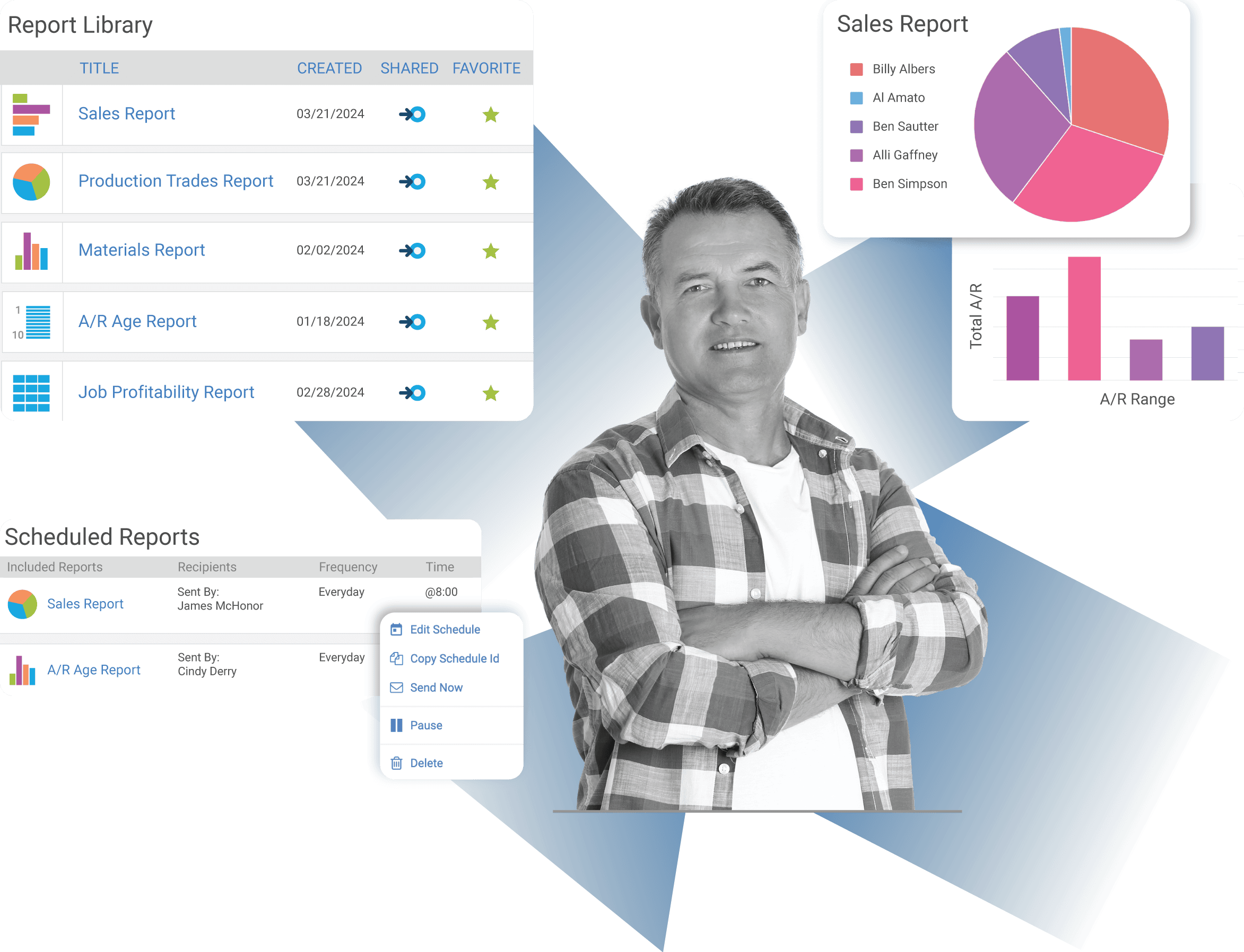 - Shared Library & Mobile Access: Share reports across the company, bookmark favorites, and access from smartphones.