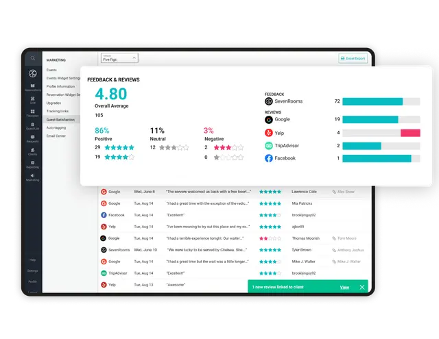 - Automatically schedule feedback requests and streamline review management by collecting customer feedback after meals, orders or events.