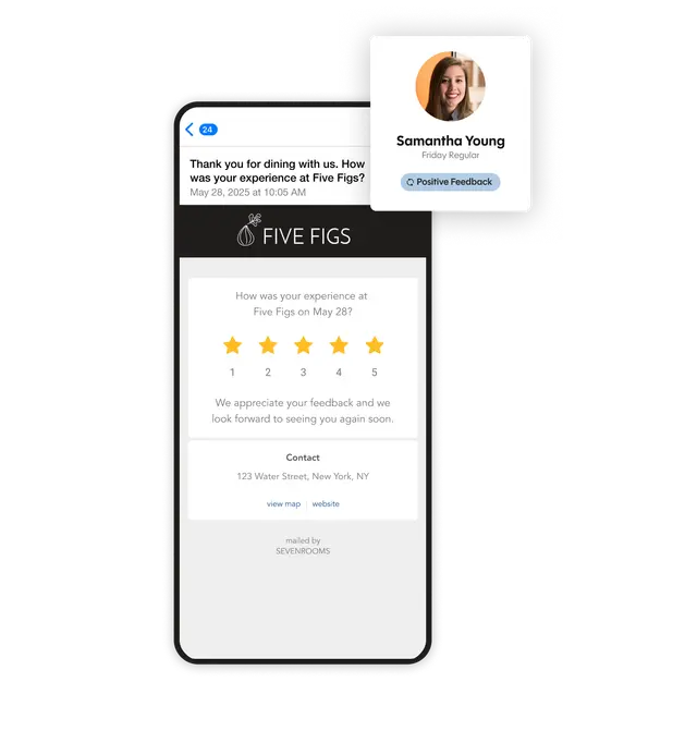 - Capture overall star ratings and specific guest feedback on food, drinks, service and ambiance to gain actionable insights.