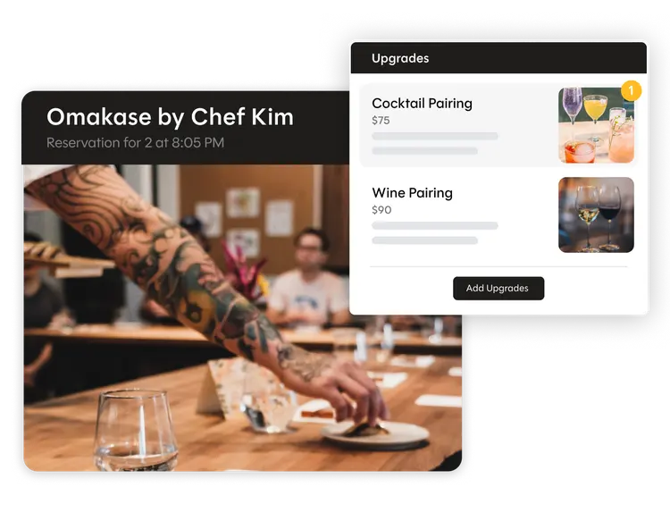 Accelerate growth and open new streams of revenue by offering special experiences, like chef’s tasting menus, or events, like live music, in the online booking process.