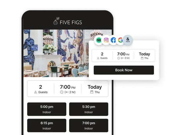 91% of guests discover restaurants from commission-free marketing channels. With SevenRooms’ restaurant reservation software, you can book more online reservations directly from your restaurant website by tapping into the world's most popular search, social media and marketing channels—without paying cover fees.