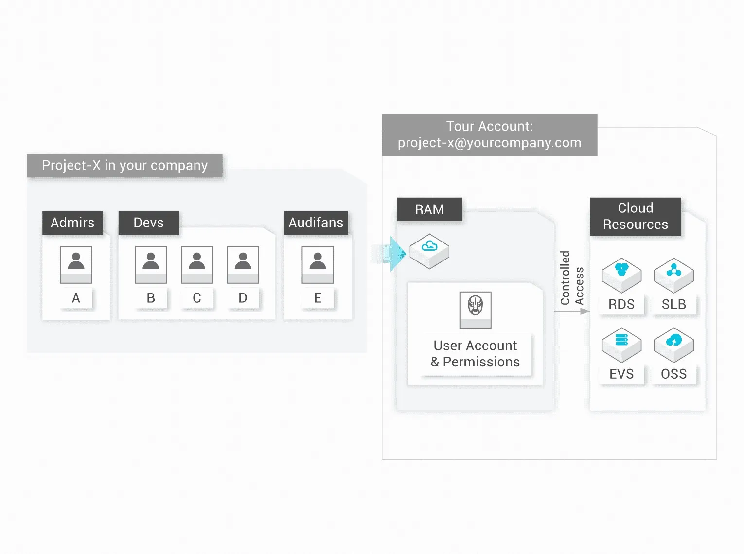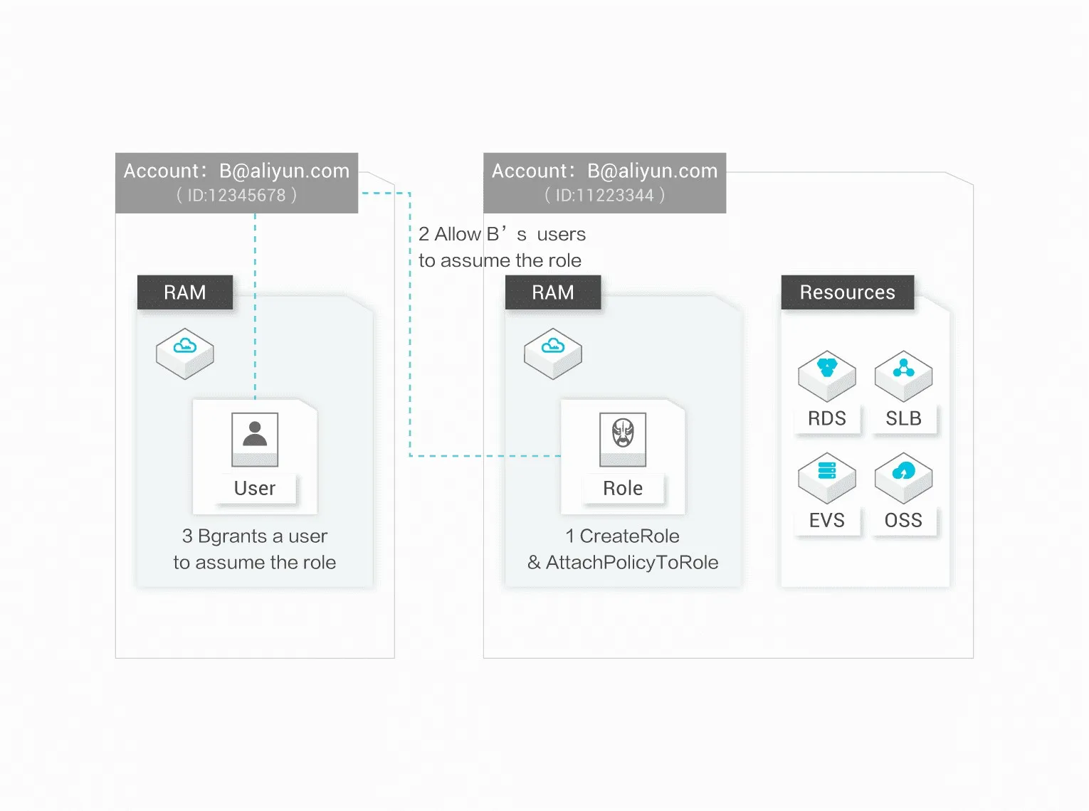 - User Access Management Grant user or user group access to users under your account, or even other Alibaba Cloud accounts