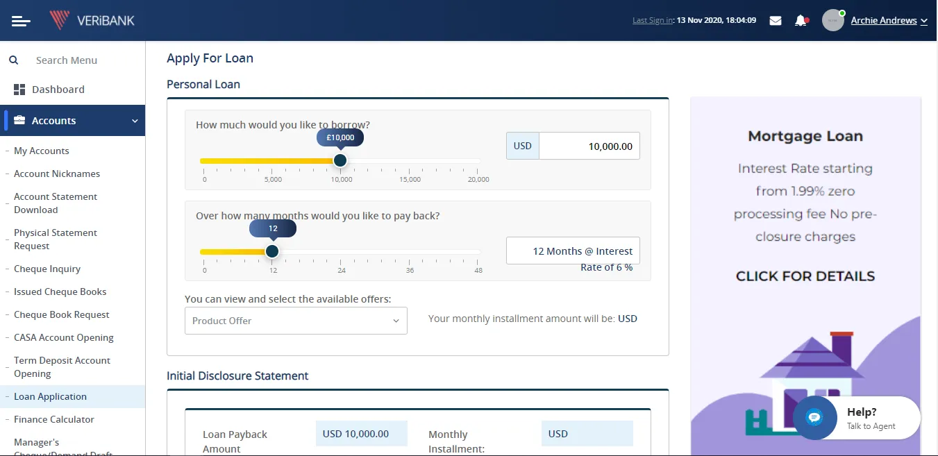 - Ability to apply for new customer loans with simplified application process.