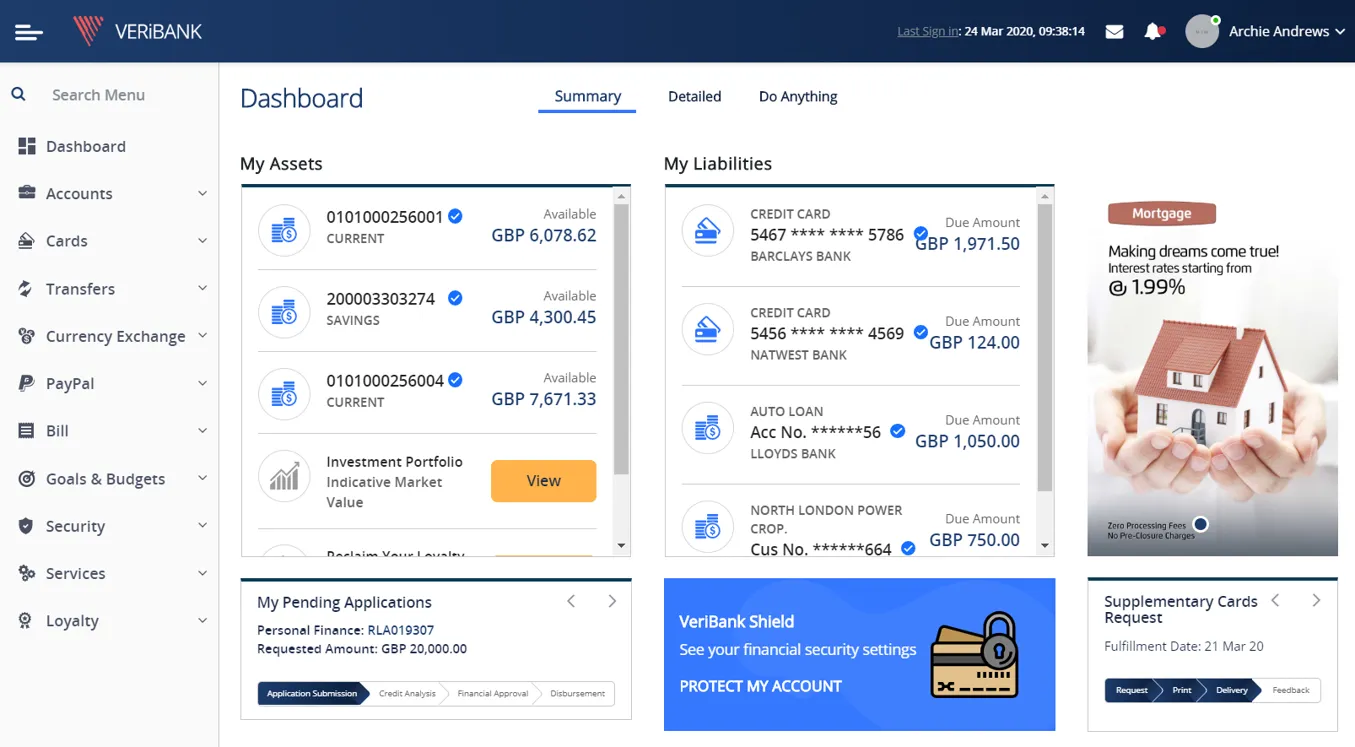 With our comprehensive suite of features, your customers can manage their accounts, pay bills, transfer funds, and more, all from the convenience of their computer or mobile device. If you're a retail bank looking to provide top-notch online banking services to your customers, VeriChannel's Retail Internet Banking module is the perfect solution. Our advanced security measures ensure the protection of your customers` sensitive financial information, while our intuitive interface makes it easy for them to access and manage their accounts with ease.
