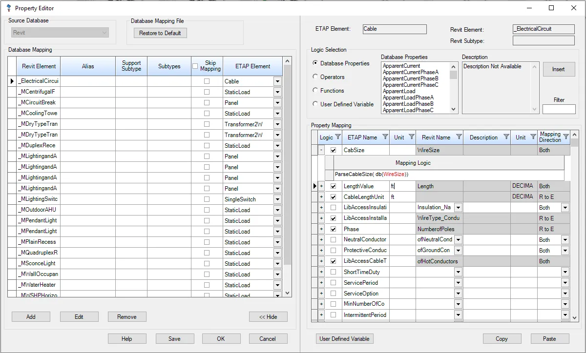 ETAP uses the information available in Revit for automatically generating an one-line diagram including unlimited sub-systems and populating element properties. Intelligent error checking maintains electrical integrity of ETAP’s element properties during the data exchange process. A universal mapping tool is used to define direct relations between ETAP element properties and Revit equipment attributes.