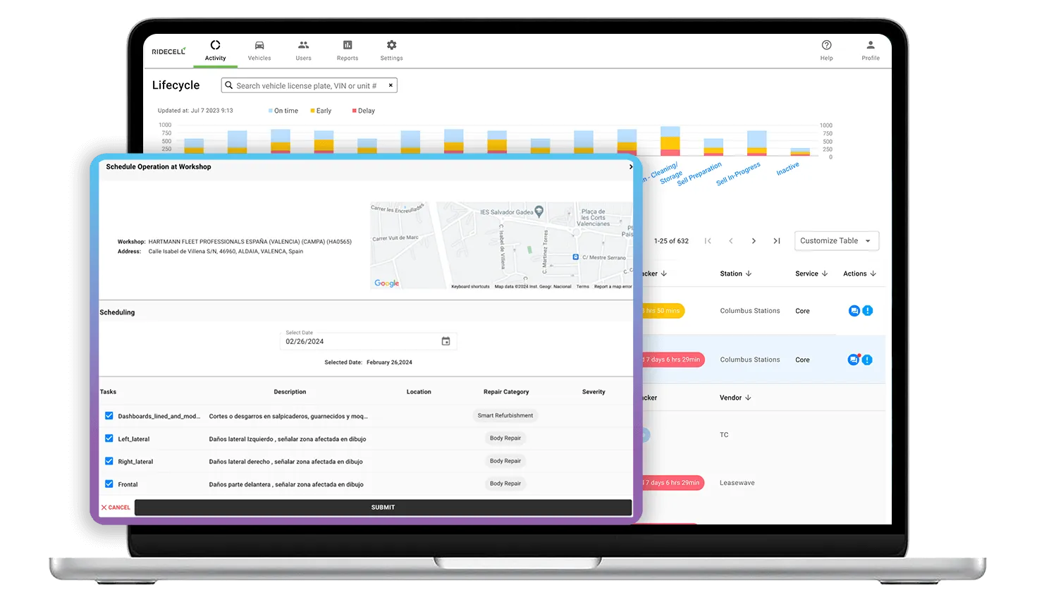 In-lease operations vary from preventative maintenance to collision management. Individually, these tasks are not complex, but they can become overwhelming when scaled to hundreds or thousands of vehicles. Ridecell Orchestration increases operational efficiency and minimizes costs by automating workshop scheduling & work orders, simplifying collision management & first notice of loss, and reducing manual errors by orchestrating entries across systems.