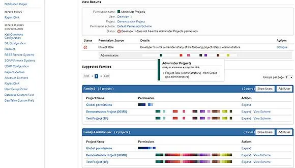 RightsDNA scans the entire Jira and groups users in permission families so you can manage permissions for all of them.