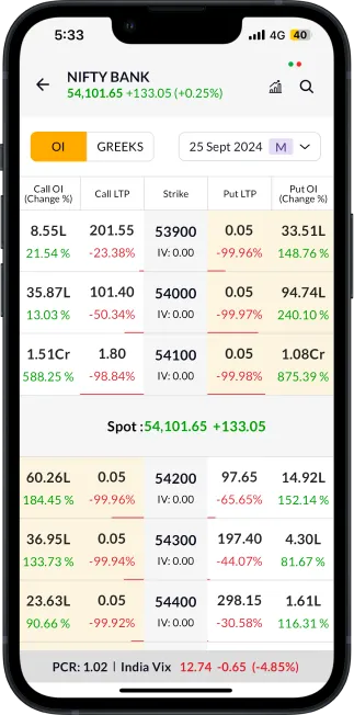 - Advanced option chain with OI change and Greeks