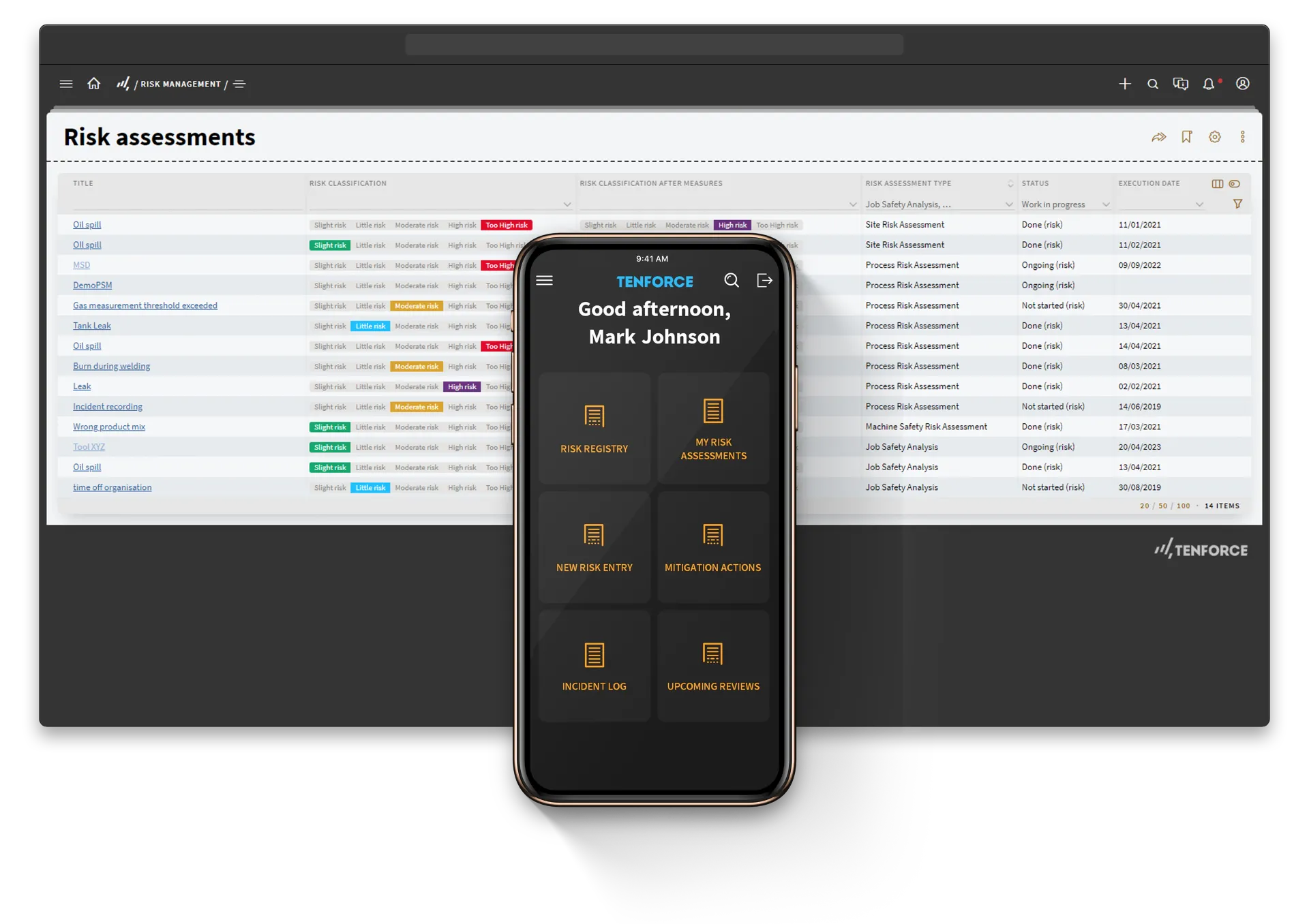 Risk Management is a module within TenForce's EHSQ platform designed to help organizations proactively identify, assess, and mitigate hazards across Health, Safety, and Environment. It supports conducting risk analyses at basic, advanced, or root-cause levels and allows applying methodologies such as JHA or HAZOP. Findings can be communicated to relevant users and departments, while risks can be qualified, prioritized, and addressed through corrective and preventive actions. The solution provides centralized data from multiple sources, daily task reports, and ownership assignments to drive accountability. It enables flexible analysis and reporting, real-time dashboards, instant alerts, regulatory reporting, and ISO/OSHA compliance, empowering better decision-making, streamlined workflows, and measurable ROI. The platform emphasizes interoperability with other TenForce modules to deliver a holistic, integrated EHSQ experience.