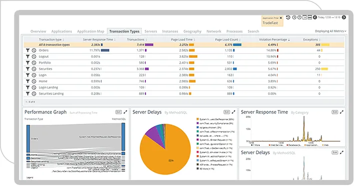 Riverbed Application Performance Monitoring (APM) provides comprehensive visibility into application performance across complex, cloud-native environments. It leverages advanced monitoring techniques such as Real User Monitoring, Synthetic Monitoring, and OpenTelemetry to deliver actionable insights that enhance the performance and reliability of business-critical applications.