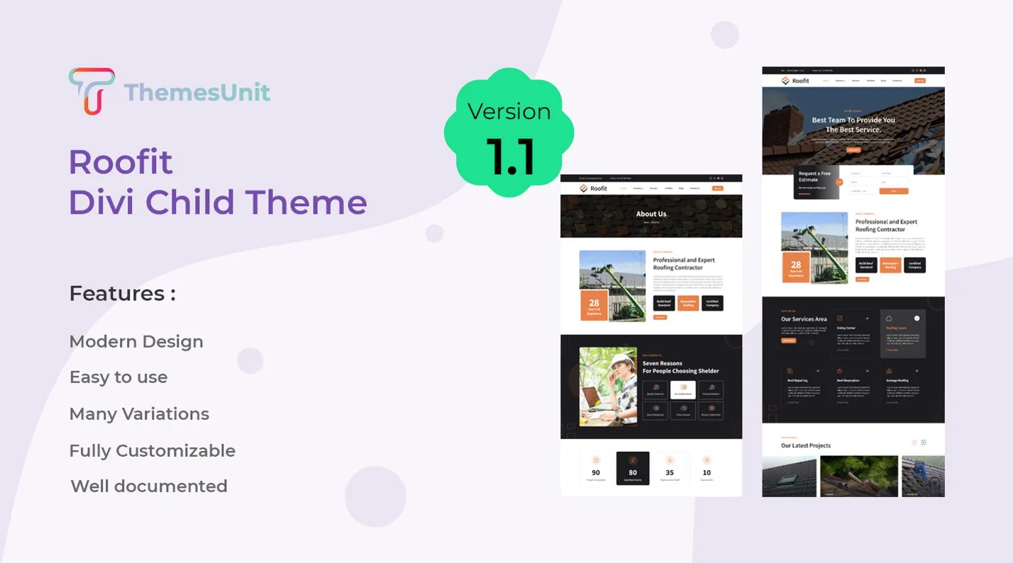 Roofit is the ideal WordPress Divi Child Theme for your roofing company. It looks really contemporary and original. This template was created specifically for metal roofing, industrial roofing, construction, roof installation, maintenance, renovation, repair service, roof repair, roofers, roofing services, and roofing firms linked to any business website.