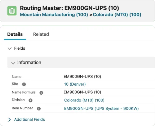 - Choose configuration- or subcontractor-specific routings to manage unique products or outsourced operations.
