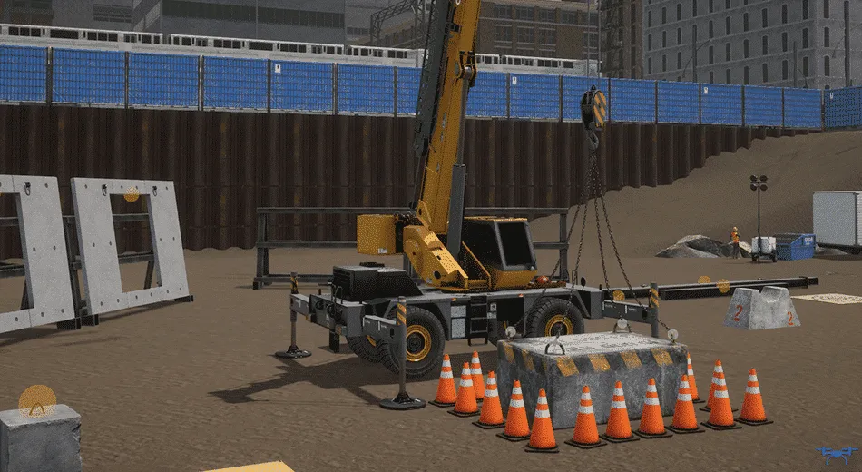 - Realistic Worksite Scenarios: Simulates complex jobsite environments with obstacles, confined spaces, overhead power lines, and dynamic hazards to prepare operators for real-world challenges safely and effectively.