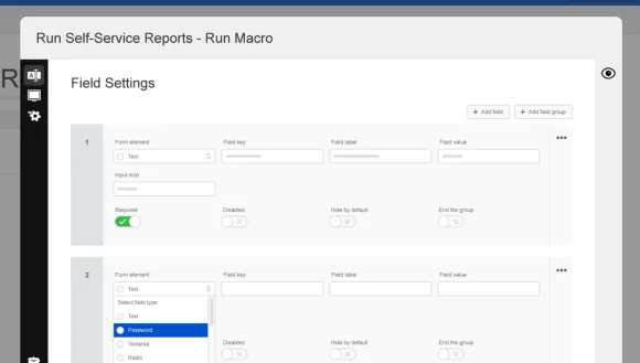 Create dynamic business intelligence reports that end users can easily customize with form-based inputs. Drive other powerful processing by nesting your favorite scripting and automation macros within the Run macro.