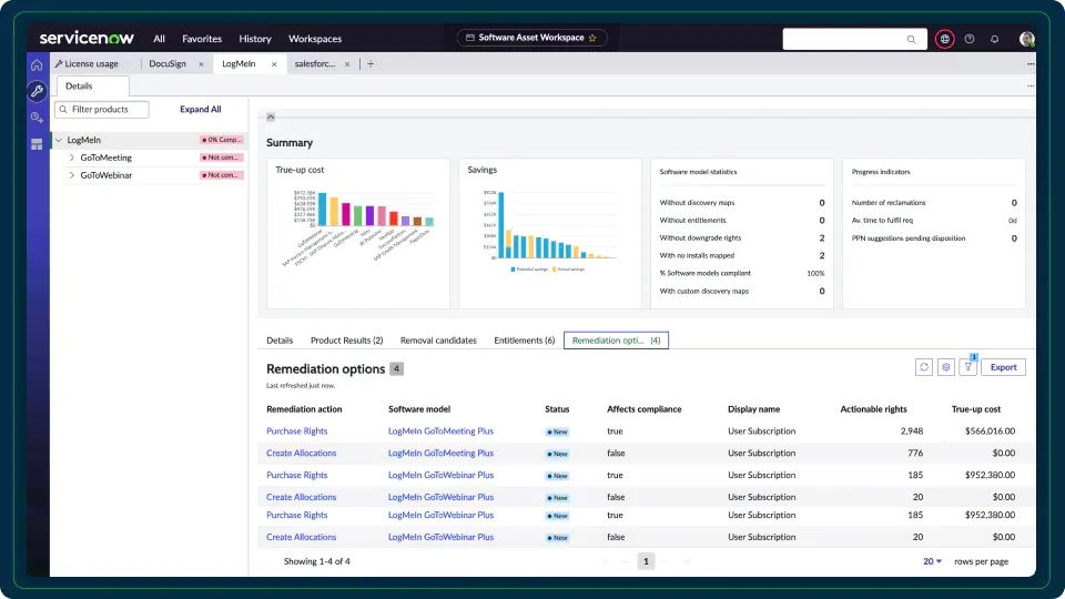 ServiceNow SaaS License Management reduces SaaS costs and optimizes usage with actionable insights, driving savings and governance across the SaaS portfolio.