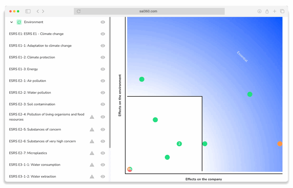 Double Materiality Assessment Support structured evaluation of impact and financial materiality.