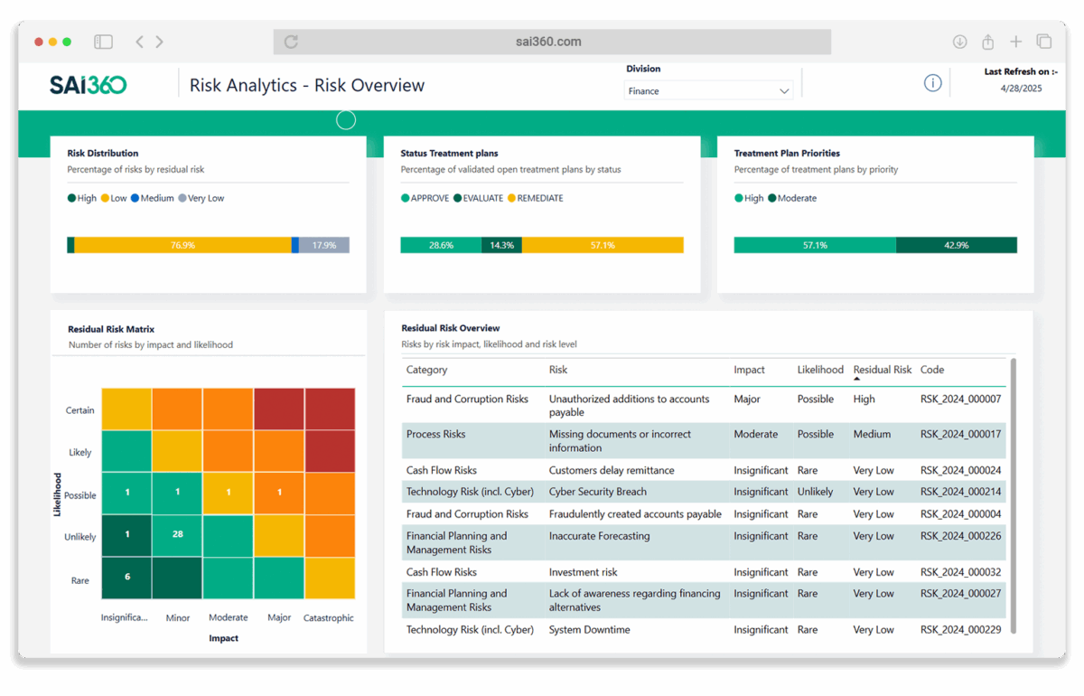 Enhanced Risk Visibility Provides organization-wide risk insight.