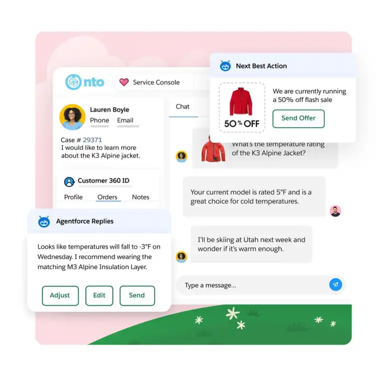 Deliver personalized service and save time with AI built directly into your flow of work. Use Einstein to analyze historical case data and automatically classify and route them to the right agent or queue. Empower agents with AI-generated replies, summaries, and knowledge articles crafted from conversation data and your company’s trusted knowledge base. Combine your business rules and predictive models to surface the right offer and next best actions to take, in real time.