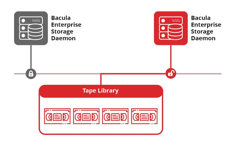 - Shared Tape Device Access: Enables two or more Storage Daemons to access the same tape library or autoloader.
