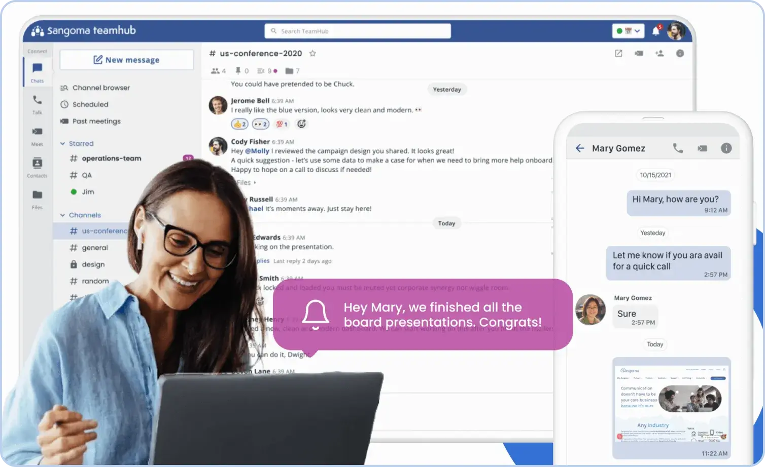 Real-Time Chat and Channels Facilitates team and topic-based discussions.