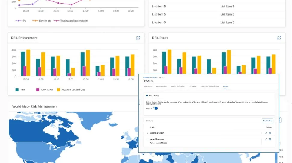 - Account takeover (AI and machine learning–based account takeover), threat detection (with risk-based authentication), and real-time security monitoring