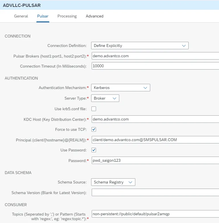 Subscribe to Pulsar topics and pull data into SAP.