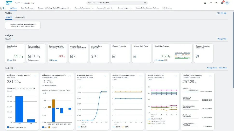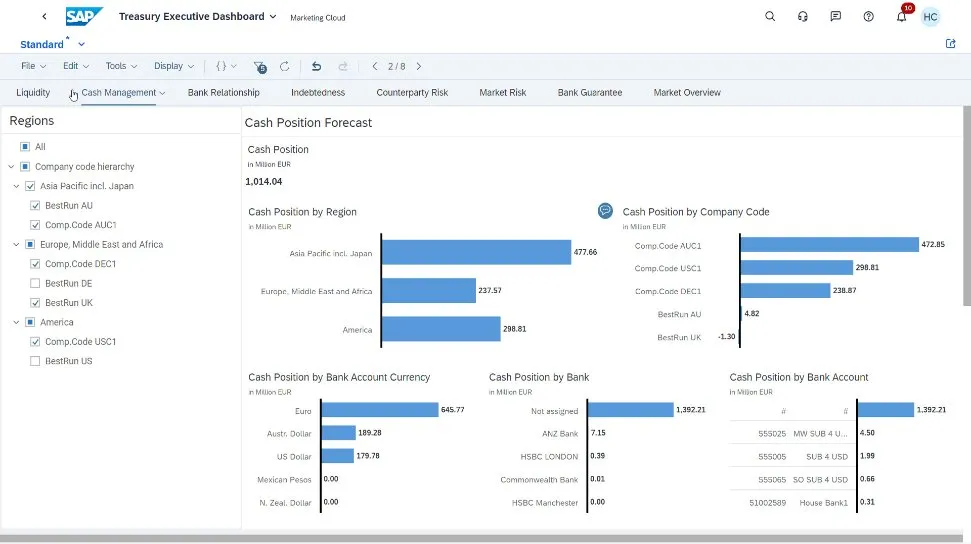 - Manage bank transfers, invest and borrow, create cash-flow memo records for expected events, and automate cash pooling