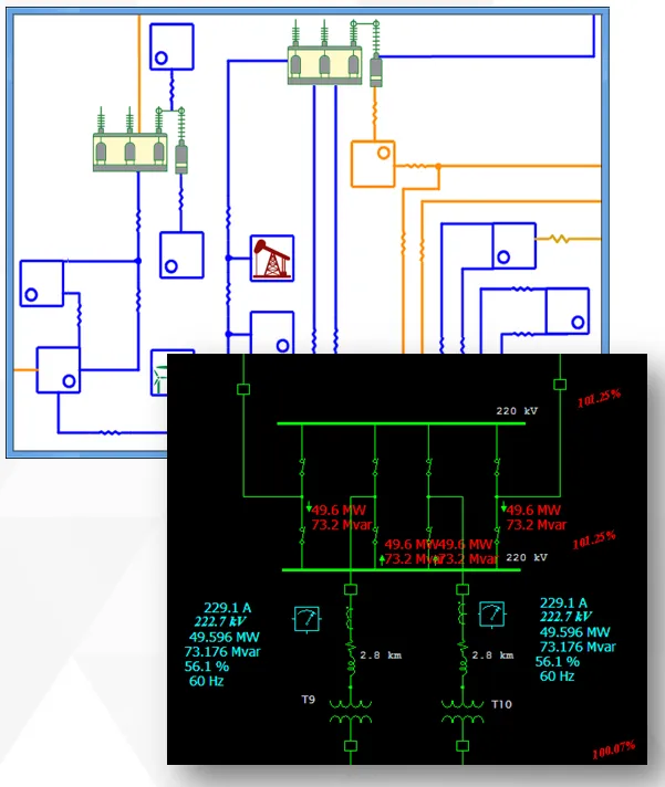 Create and manage single-line drawing schematic for 3-phase and 1-phase AC / DC, and grounding / earthling type’s networks with unlimited buses, distribution panel boards and other elements including detailed instrumentation.