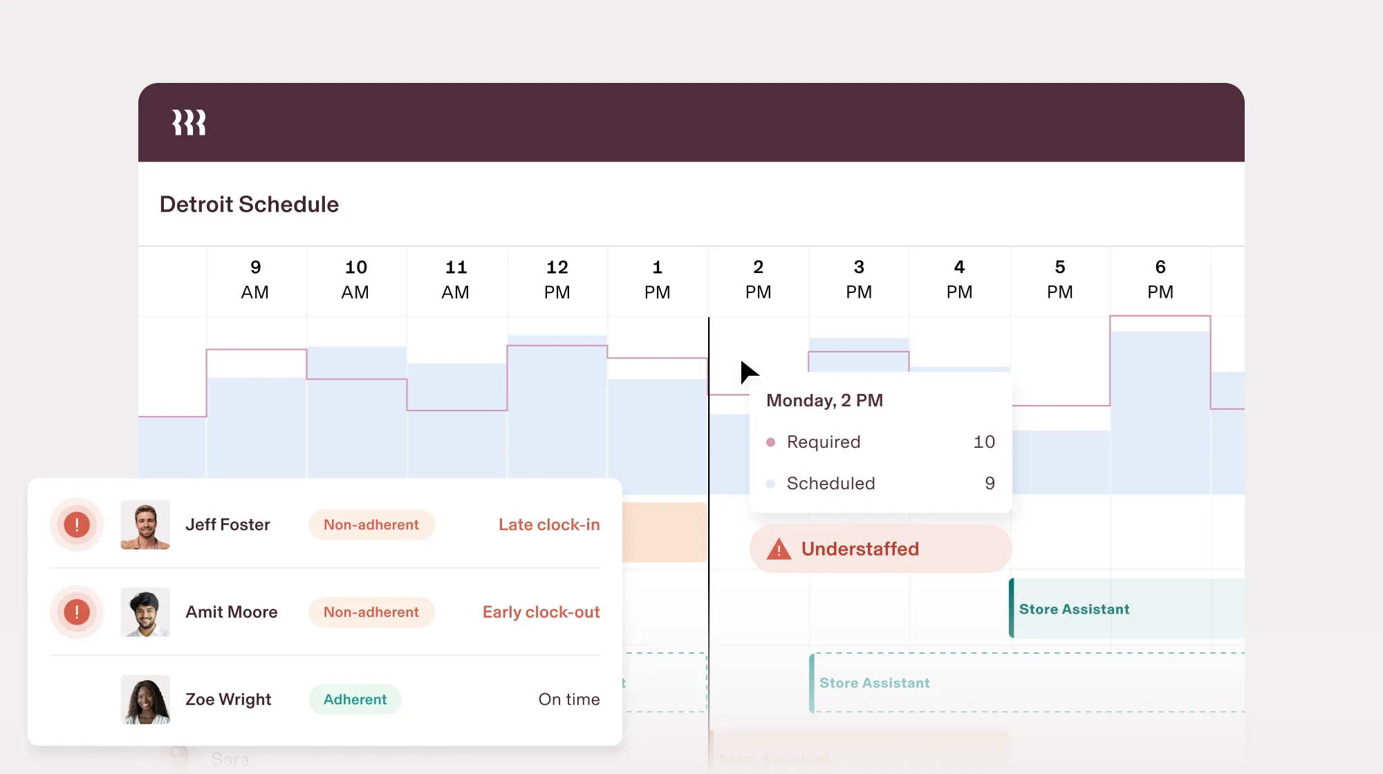- Employee Adherence Tracking: Ensure employees stick to schedules and track deviations effectively.