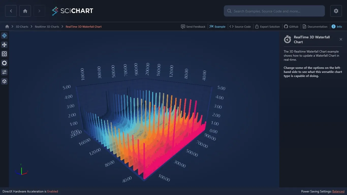 SciChart WPF 3D is a real-time, high-performance WPF 3D Chart Library made for financial, medical and scientific apps in mind. It is designed for projects that need extreme performance and rich, interactive 3D charts. The library uses a DirectX-powered rendering engine and an extensive API, allowing developers to create impressive, highly interactive 3D charts for demanding visualization scenarios. With the option to get a free 30‑day trial, users can evaluate SciChart’s performance advantages in their own applications. SciChart 3D for WPF is trusted by thousands of developers worldwide and has customers in almost 80 countries in sectors including pharmaceutical, oil & gas, medical, instrumentation, defence, aerospace, motorsport, process automation, mining, investment banking, trading and more. The solution enjoys a 4.84 average rating across 462 reviews, backed by responsive and expert technical support. The SciChart SDK for WPF includes a DirectX‑powered WPF 3D Chart control featuring 3D Bubble Charts, 3D Scatter Charts, 3D Point‑Cloud Charts, 3D Column Charts, 3D Impulse (Stem) Charts, 3D Surface‑Mesh charts and 3D Point‑Line charts. The flexible rendering engine, core charting APIs, and comprehensive examples make it easy to build advanced 3D visualizations. SciChart’s WPF 3D Charts deliver legendary performance through extensive end‑to‑end optimizations, unsafe code, C++ interop, a DirectX rendering engine, and intelligent culling/resampling algorithms. Developers can display static Surface Meshes up to 16,000 × 16,000, real-time Surface Meshes up to 1,000 × 1,000, and real‑time point clouds exceeding 1,000,000 points. The WPF 3D Chart control integrates with the broader SciChart ecosystem, providing shared APIs for axis configuration, label formatting, chart modifiers, renderable series, and theming. With over 130 live WPF examples, 300+ pages of documentation, thousands of forum posts, and a responsive support team, SciChart provides one of the most comprehensive 3D charting solutions available on the .NET/WPF platform.