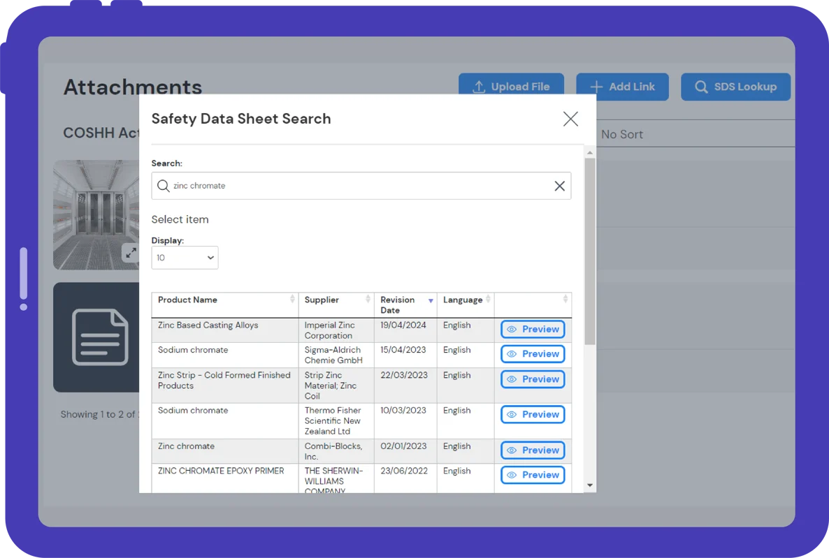 - Chemical Register Integration: Link SDSs to chemical inventories, enabling efficient tracking and management of chemicals across your organisation.