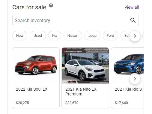 - Google Business Profile – Inventory Promotion: Highlight live inventory directly in Google search results, allowing prospective customers to view availability, pricing, and essential details to drive informed purchasing decisions.