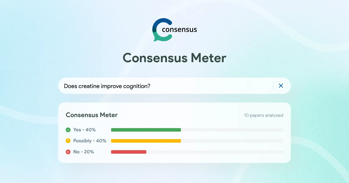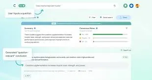 - **Consensus Meter: **For binary “yes/no” queries, analyzes the first 20 relevant papers and classifies consensus results as “yes,” “no,” or “possibly,” with transparent sources and extracted quotes.