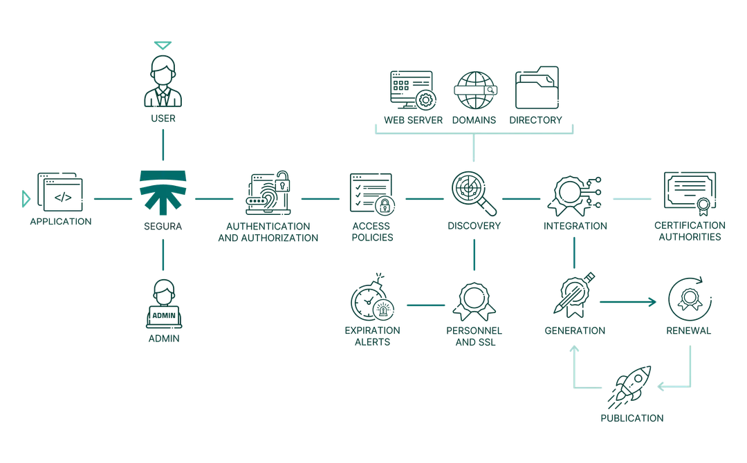 Segura® Certificate Manager is a centralized solution for managing the lifecycle of digital certificates across enterprise environments. It helps organizations prevent service disruptions caused by expired certificates and ensures secure communication between systems, applications, and users. The platform automates discovery, issuance, renewal, and revocation of certificates, providing full visibility and control over certificate infrastructure. Designed for hybrid and multi-cloud environments, Segura® Certificate Manager integrates with existing PKI systems and supports a wide range of certificate authorities. It enables security and IT teams to enforce policies, reduce manual effort, and maintain compliance with internal and external standards.