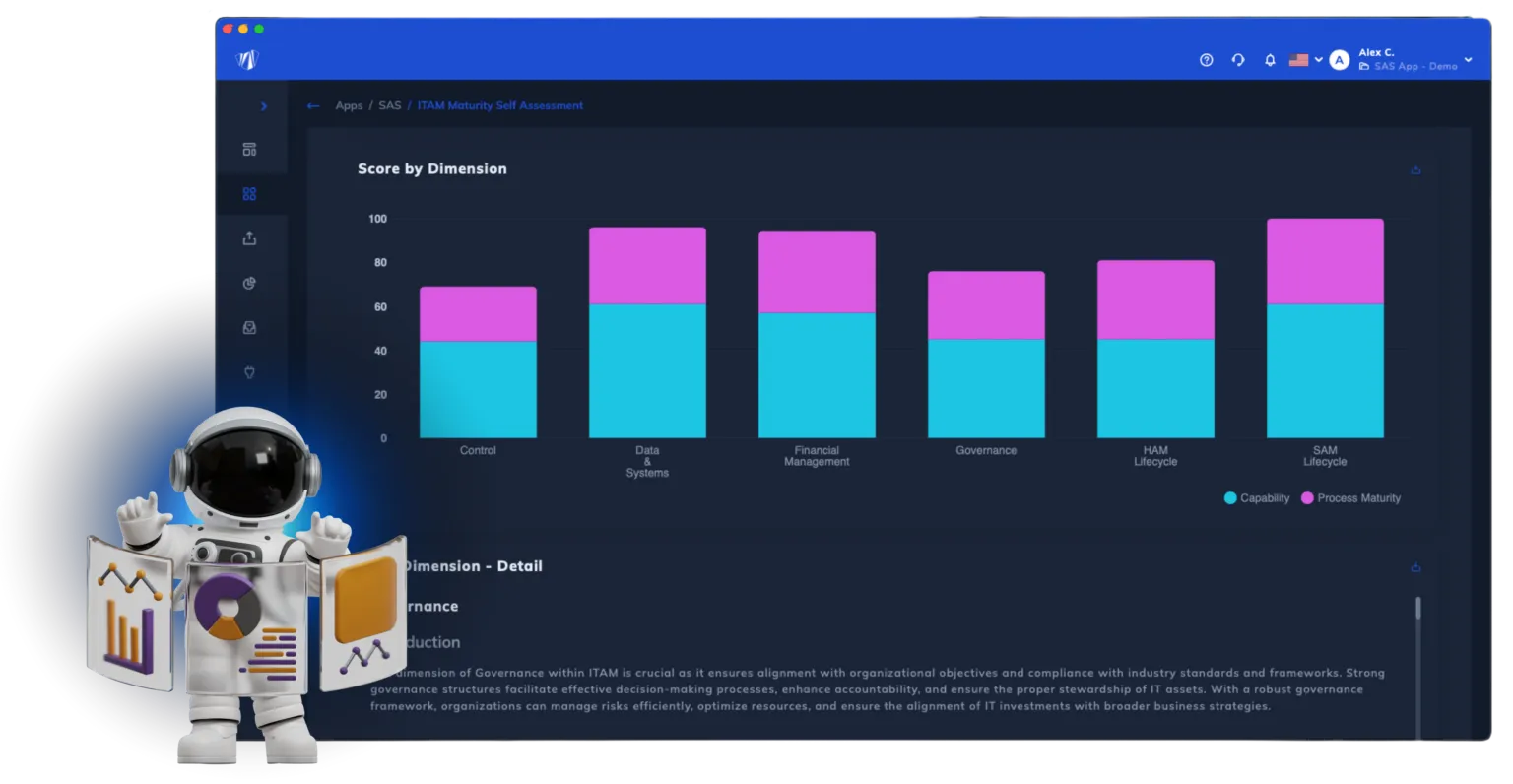 - Best-Practice Capability Score: Evaluates ITAM practices against industry benchmarks.