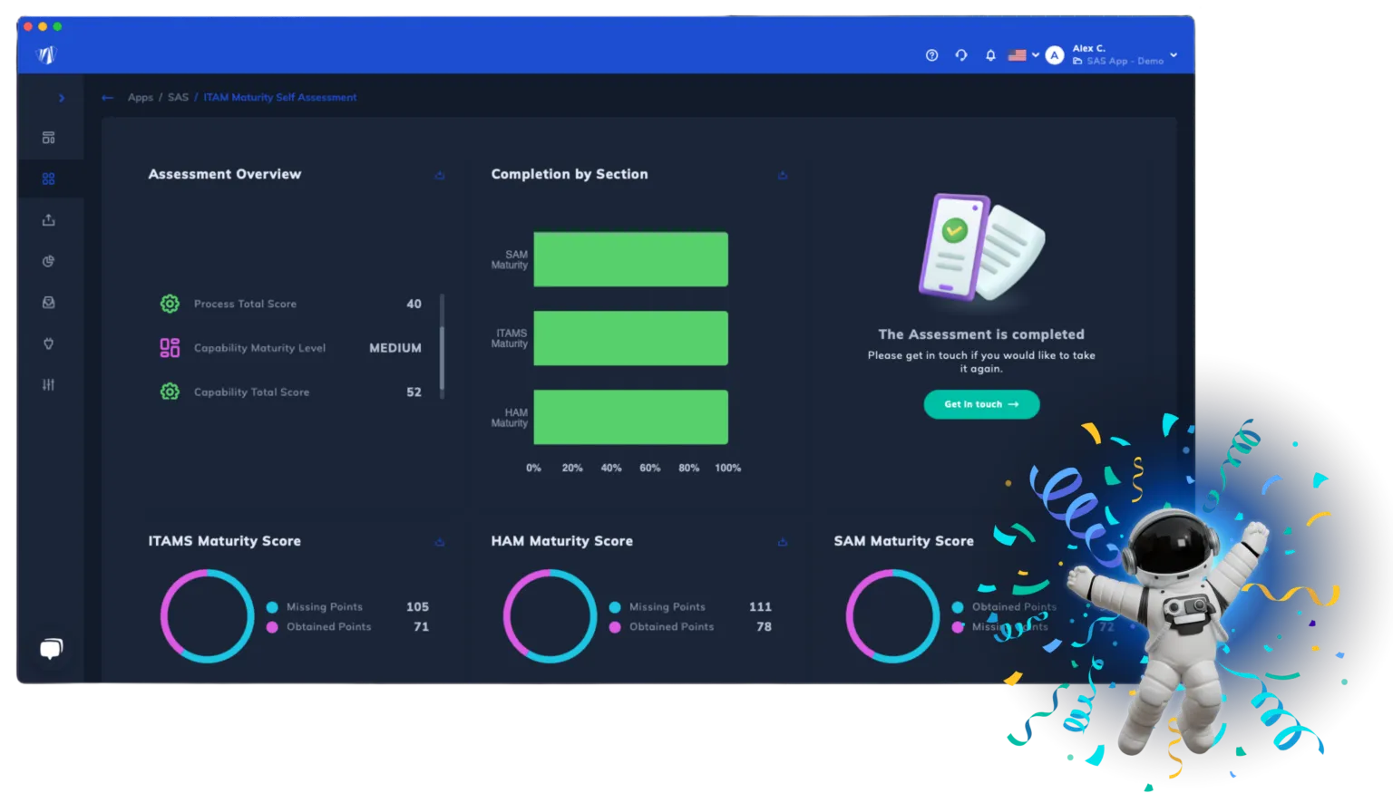 - Instant Maturity Report: Generates a real-time report upon completion of the assessment.