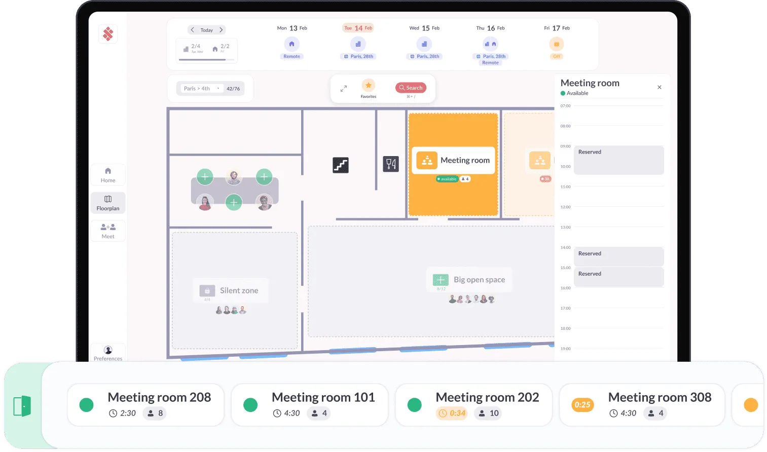 - Floor plan editor for intuitive workspace design.
