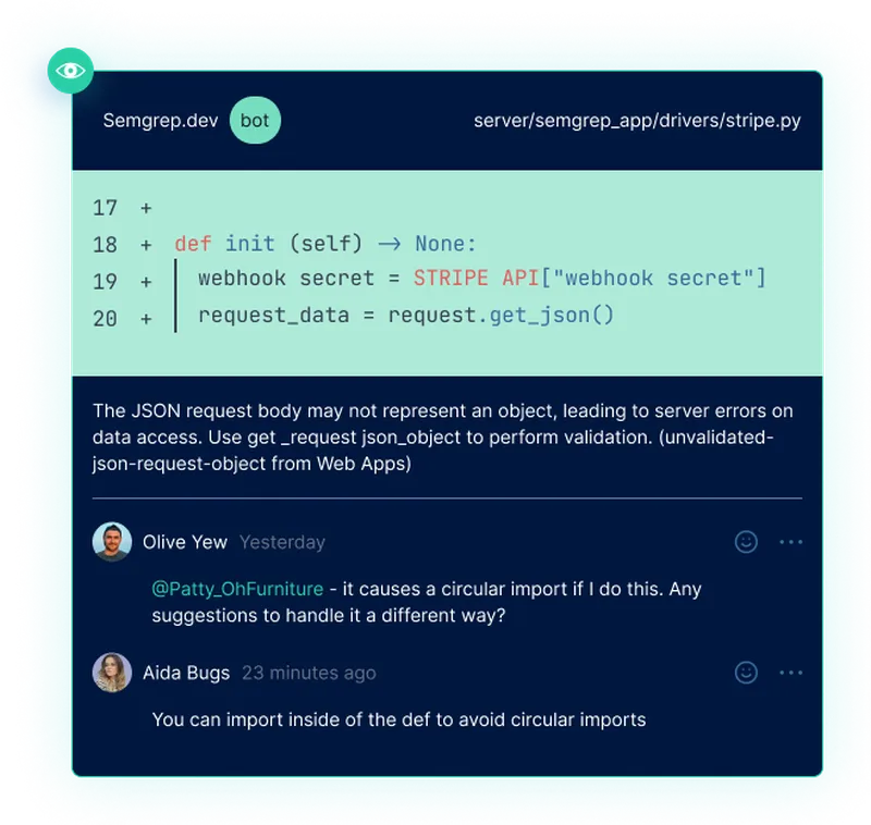 Semgrep AppSec Platform automates, manages, and enforces secure code standards, supply chain security, and secret detection across an organization's codebase.