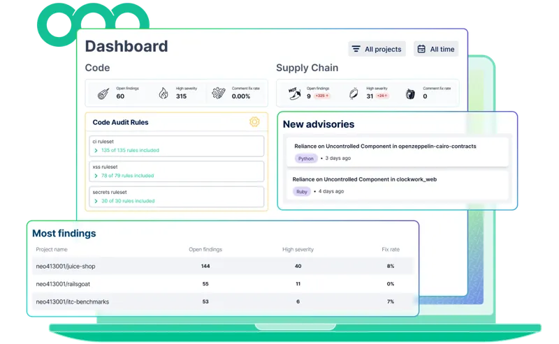- Enables rapid deployment across hundreds or thousands of repositories with seamless integration with GitHub, GitLab, and other SCM/CI tools. Provides centralized UI for managing findings, filtering by project, severity, branch, or rules, and integrating with alerts via Slack/email or APIs.