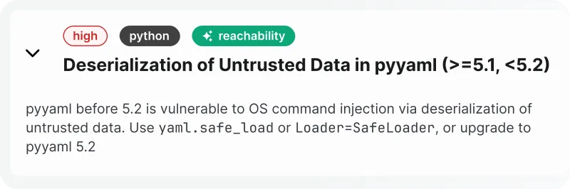 - Filters out unreachable alerts, shows exact lines of code where vulnerable functions are used, reducing false positives and providing actionable results.
