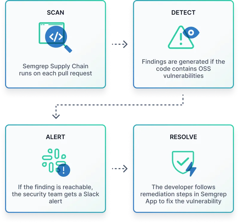 Semgrep Supply Chain identifies and remediates *reachable* dependency vulnerabilities, cutting alert noise to secure the software supply chain.