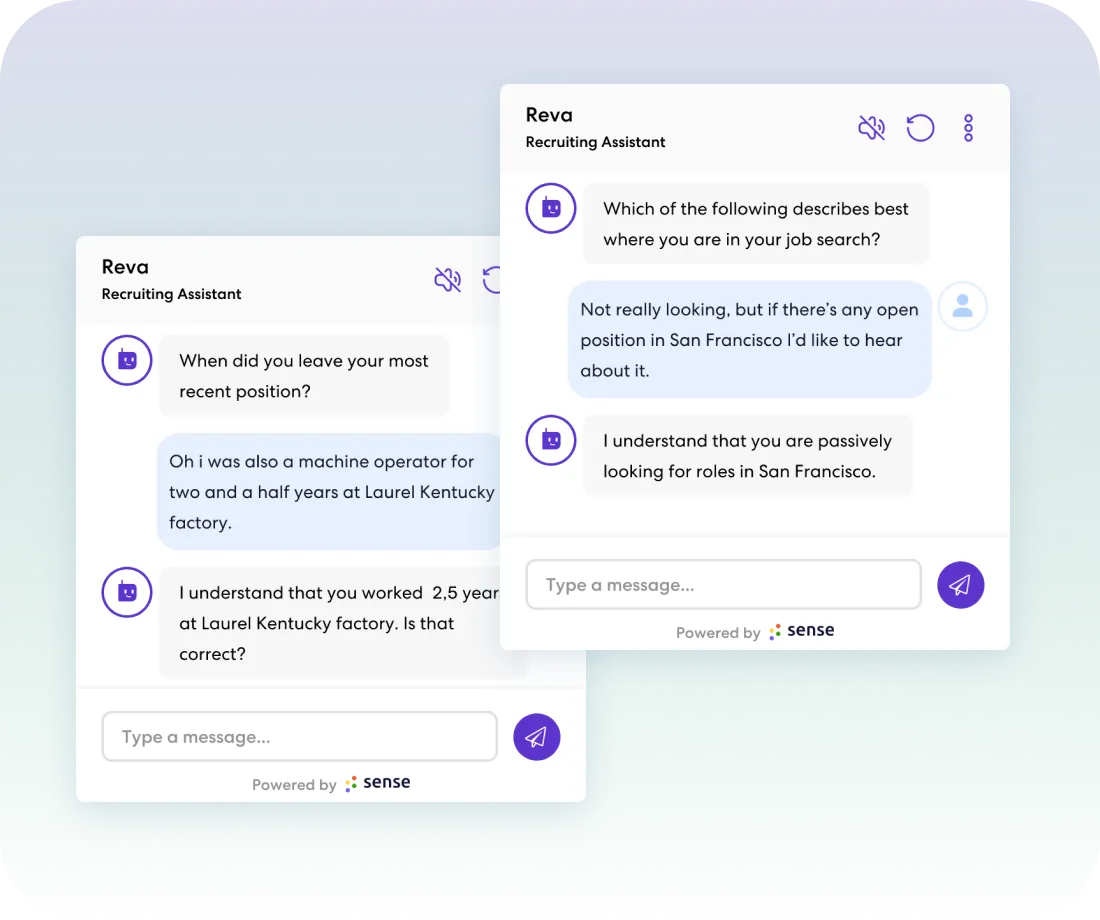 Built as a true digital assistant, Sense handles time-intensive tasks for recruiters, freeing them to focus on value-driving activities, while automating repetitive processes, optimizing workflows, and streamlining talent management with AI.