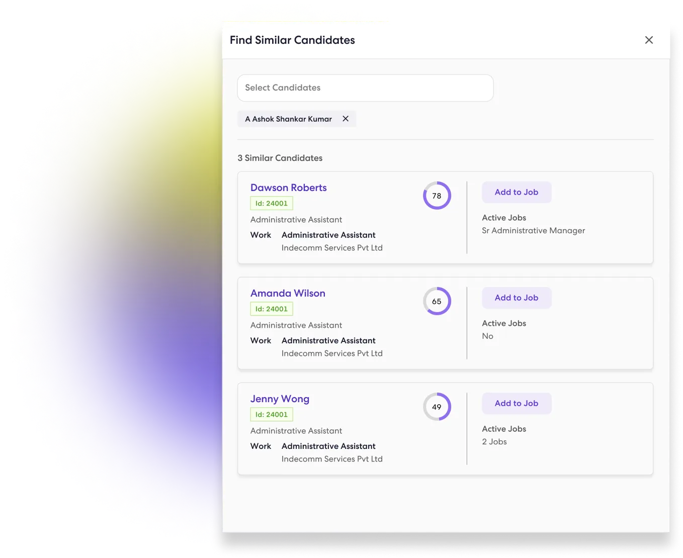 Accelerate hiring with instant FAQs, automated candidate screening, streamlined interview scheduling, and candidate fit scoring.