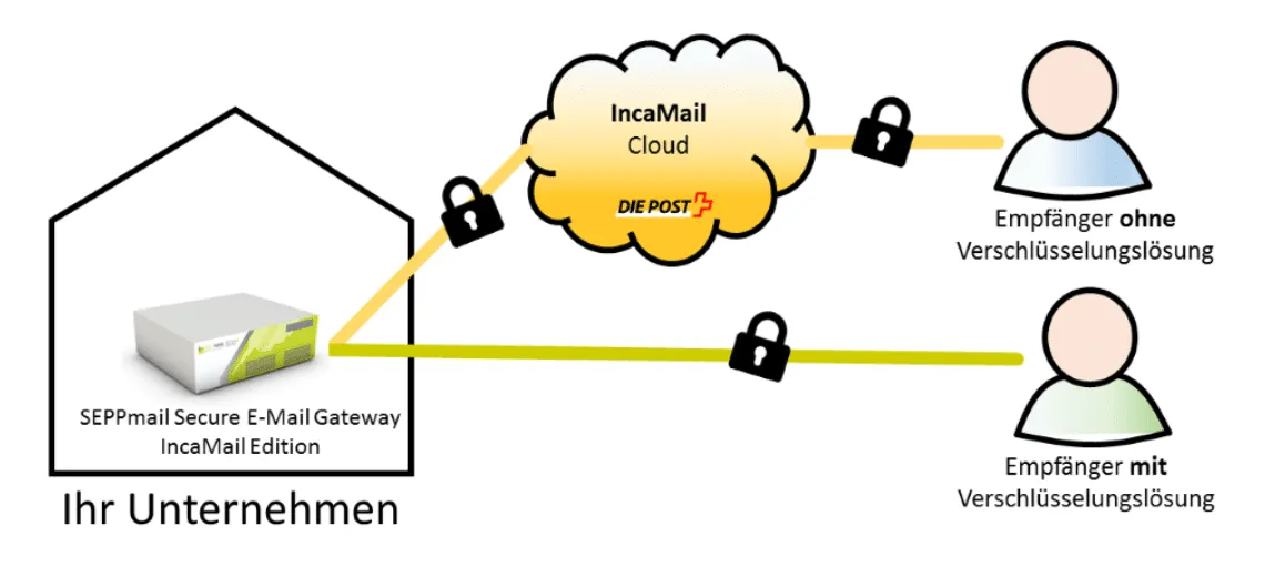 The IncaMail Managed Cloud Service from Swiss Post allows confidential emails to be sent to recipients securely and transparently without requiring their own encryption infrastructure. The “SEPPmail IncaMail Edition” option gives SEPPmail clients direct access to the IncaMail network.