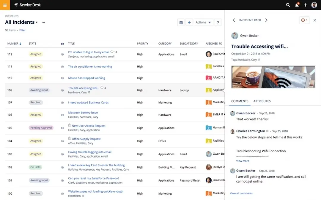- Incident Management: Streamlines the process of logging, tracking, and resolving IT incidents, ensuring quick and efficient response to issues.