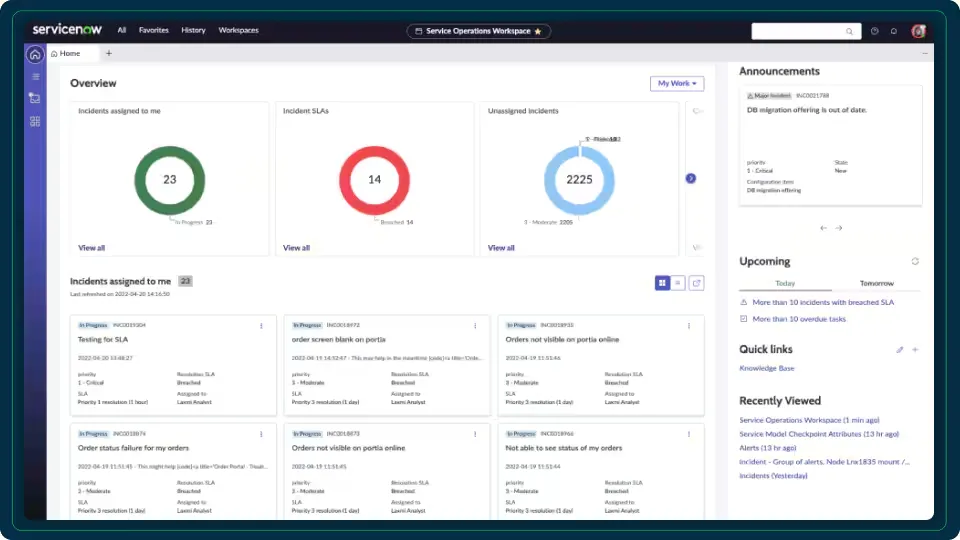Service Operations Workspace by ServiceNow is a SaaS solution designed to enhance IT service management through proactive incident resolution and operational efficiency. It integrates key functionalities to streamline service operations within a unified interface.